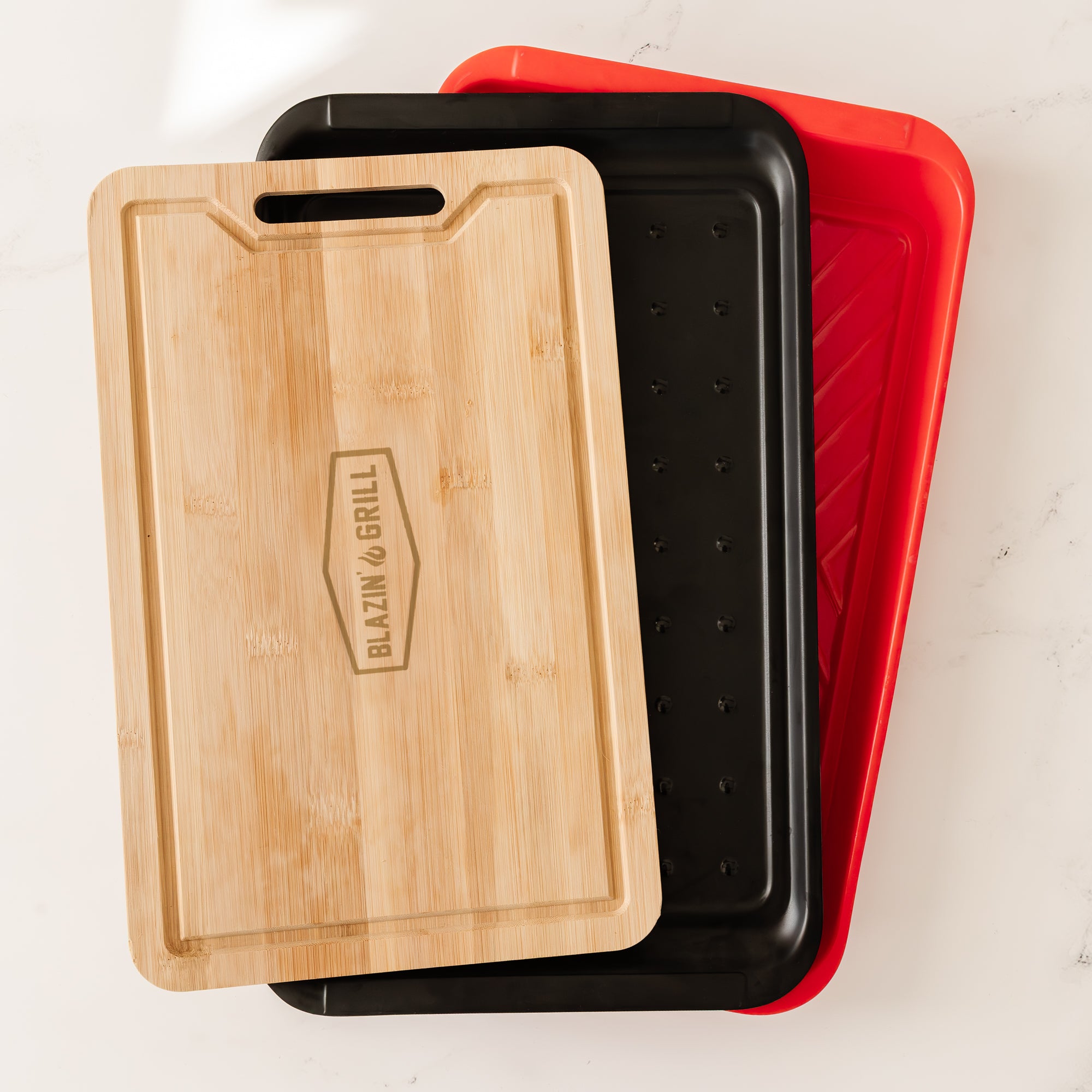 Make BBQ prep & serving a breeze with 1 trip to the grill. Includes a red tray for prep, a black tray for serving and even a cutting board ensuring a streamlined and hygienic BBQ process.